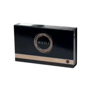 Maili Maili je nova generacija premijum hijaluronskih filera, koja daje dugotrajne i prirodne rezultate.Proizveden u Švajcarskoj i stvoren kao savršena sinergija između nauke, lepote i umetnosti.Maili PreciseZa fine linije i bore, podočnjake.Maili Define Za oblikovanje i definisanje usana, nazolabijalne boreMaili VolumeVeliki stepen viskoznosti, za jagodice, bradu, duboki nabori.Maili ExtrimeNajveći stepen viskoznosti.Veoma duboki nabori; linije i bore;glabelarne linije (obrve); obrazi; brada.